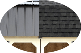 Give your shed & backyard landscape an upgraded look with our 29-gauge metal roof, available in a wide array of colors and backed by a 30-year limited warranty. OR...match your home’s roof for looks or for HOA compliance using our residential grade architectural shingles, available in commonly used colors.