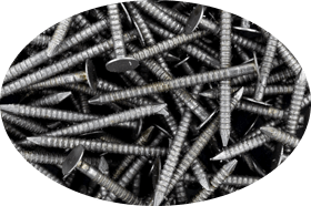 Exposed nails are ring-shanked and galvanized for rust prevention. Ring-shank nails have twice the withdrawal strength of smooth-shank nails. The rings around the nail shank lock into each groove along the shank, resulting in a nail that holds tight despite extreme wind or cyclical moisture conditions.